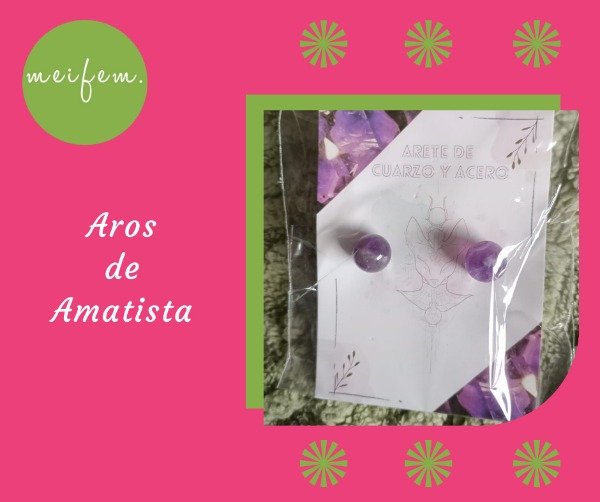 Aros de amatista con pasante de acero inoxidable. Hechos en México.
