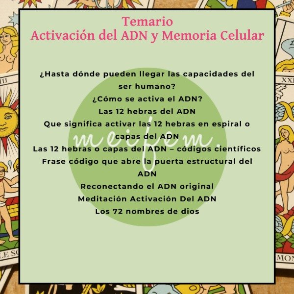 Es un curso muy interesante que contiene su propia activación en su práctica, accediendo a una poderosa información de la memoria celular. También estableceremos contacto con los 72 nombres de Dios.