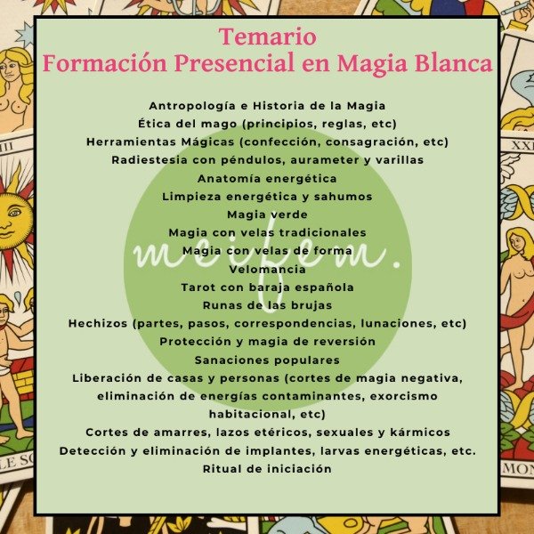 Esta formación integral en Magia Blanca se realiza de manera presencial, cursando una vez cada 15 días durante 12 meses. Formación única en su género.
